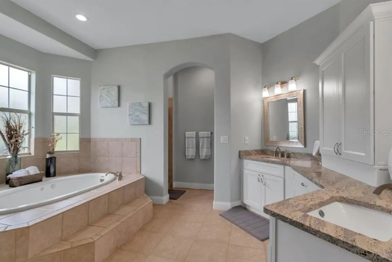 For this vacation home project, we were looking to upgrade the space for guests in their stay with clean colors and better space utilization. We took out the bulking soaking tub in favor of a better floor layout and a walk in shower. Finishing the room in sleek tile and neutral tones.